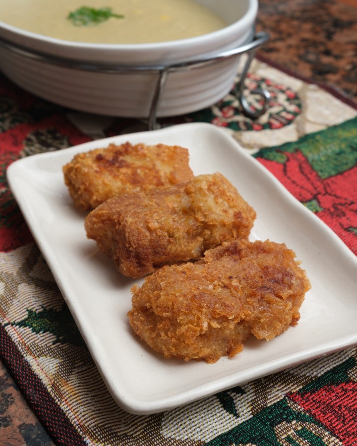 Note: I won’t give exact amounts I used since I just go by look and taste. I will tell you roughly what I used. Remember to be creative when cooking. I actually messed up my first batch of croquettes because I made them too big and didn’t put enough oil so make sure that yours aren’t too big and you have enough oil that they have enough space to float.
